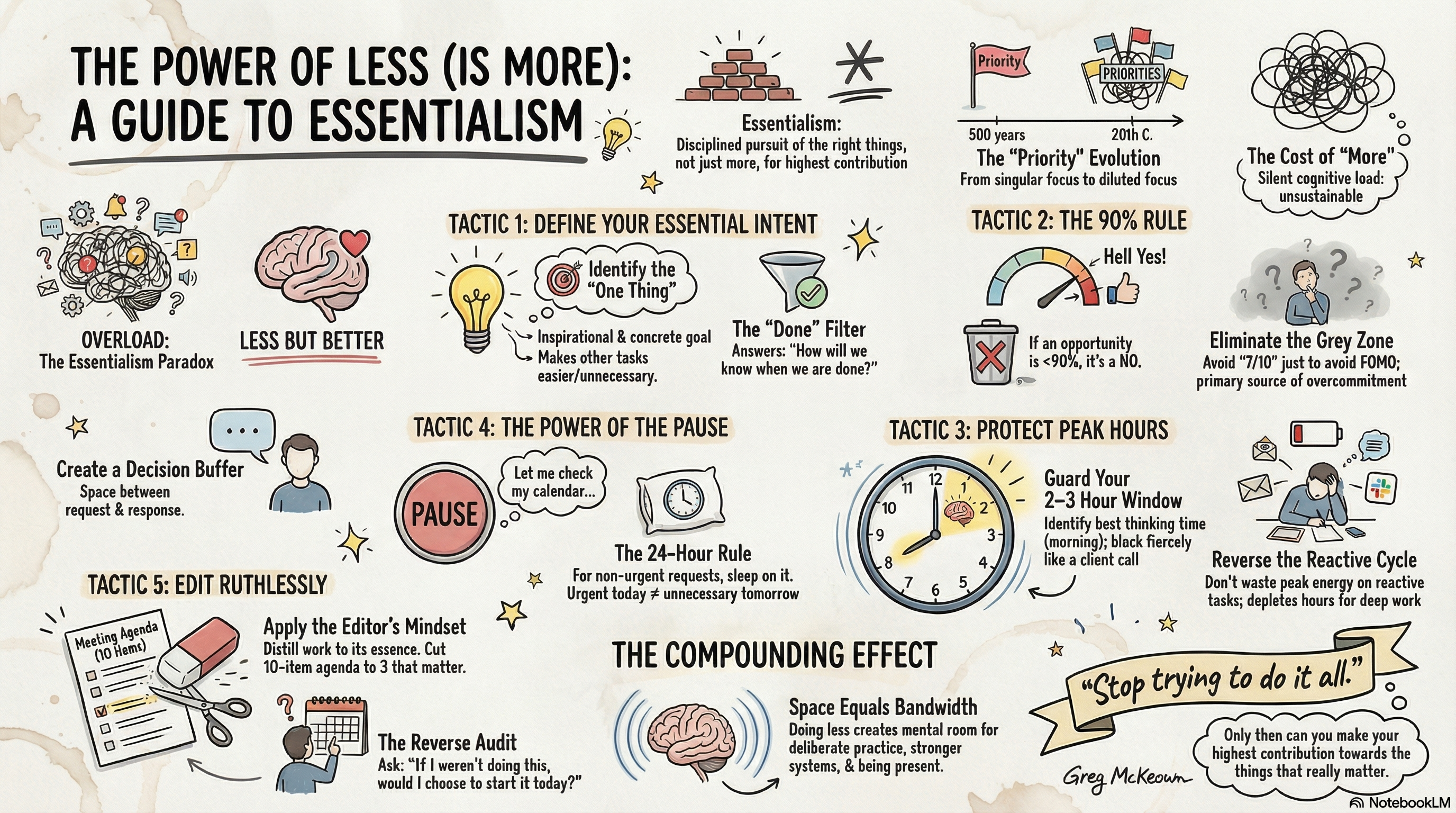 The core of essentialism: distinguishing the vital few, cutting the trivial many, and channelling your best energy into what actually matters.